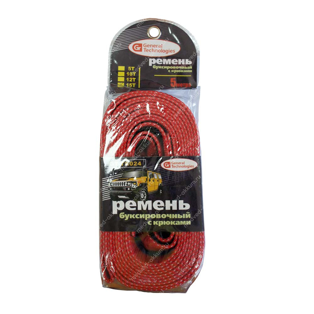 Трос буксировочный лента General Technologies с крюками GT-TR024 - 15т.