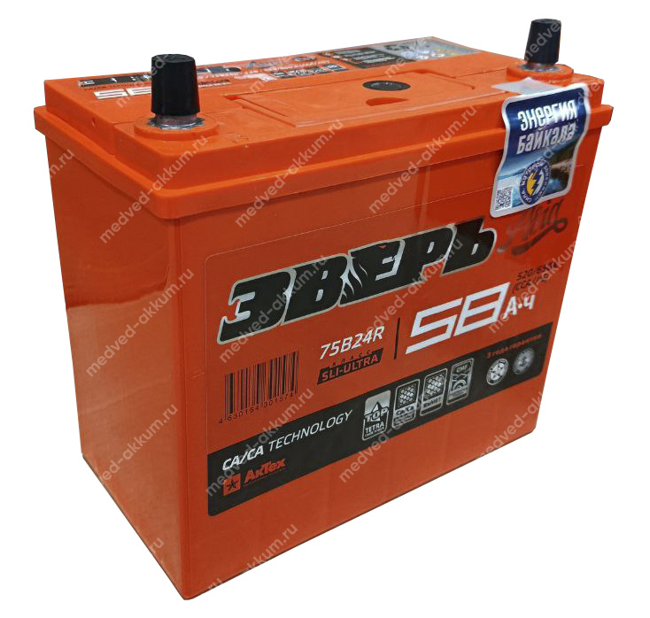 Зверь-Азия 58 Ач пр. 75B24R